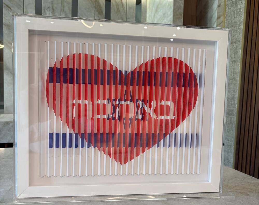 Ahava Red Heart & Israeli Flag 3D Wall Sculpture Hand Signed Custom Framed COA