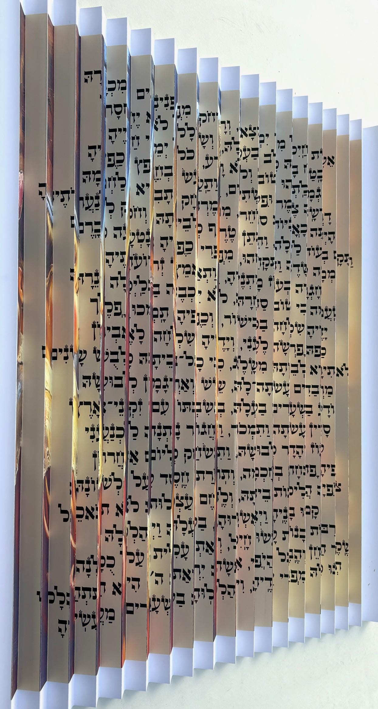 As viewers shift their perspective, they are greeted with an unexpected layer of depth: the poem "Eshet Chayil". This poem holds historical significance as a tribute spoken by Abraham in memory of his wife, Sarah. It celebrates the women's strength and virtue.