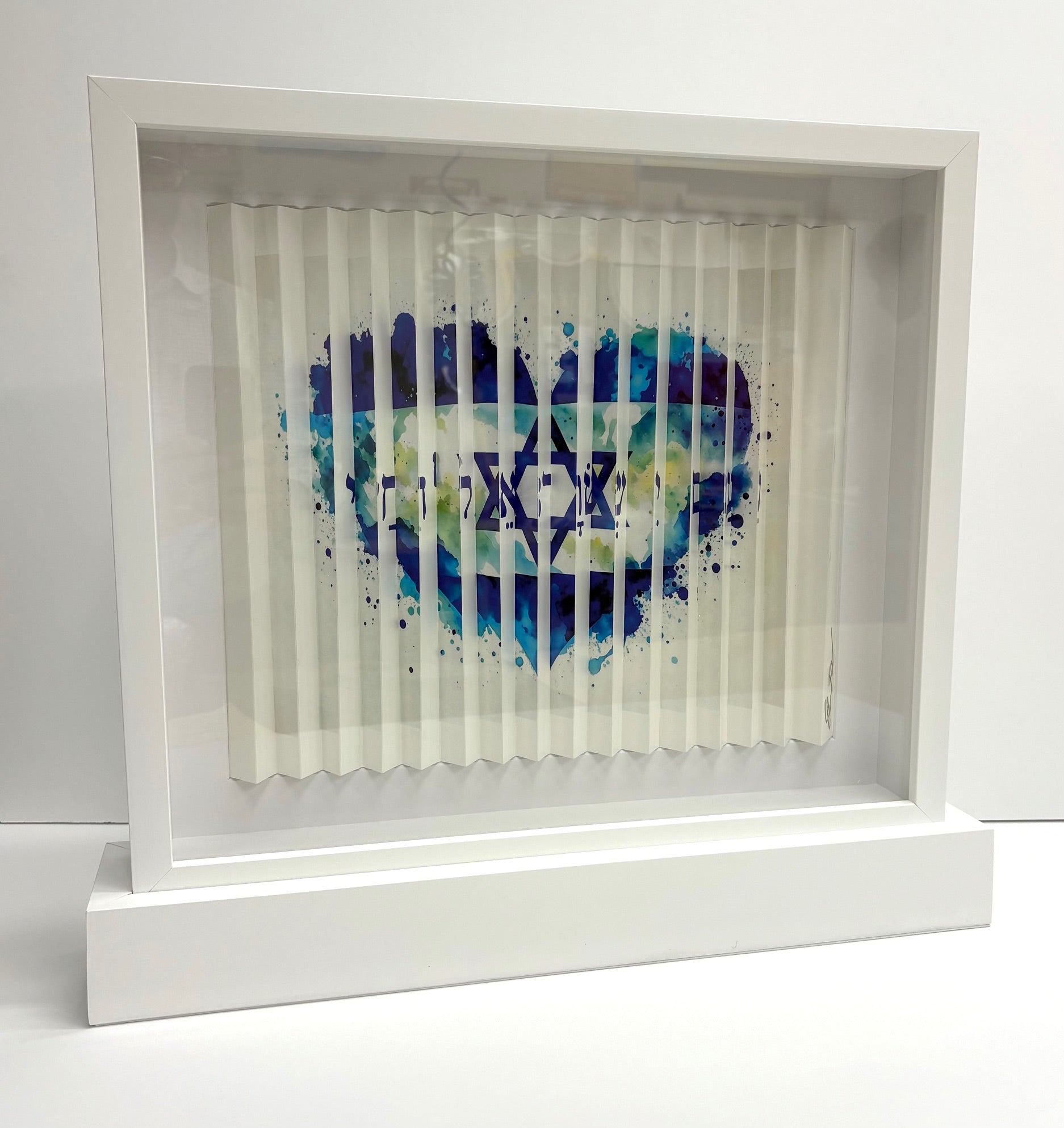 Am Yisrael Chai - Blue Heart & Israeli Star 3D Sculpture in Case