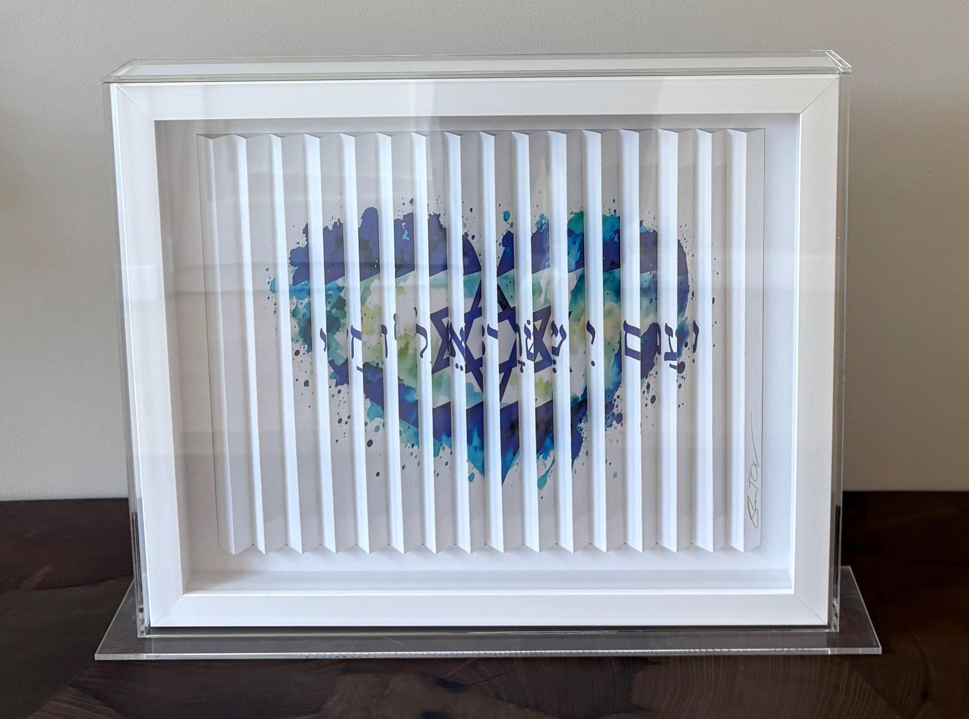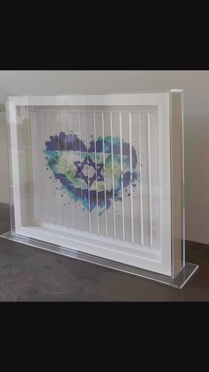 Shem Tov Am Yisrael Chai - Blue Heart & Israeli Star 3D Sculpture in Lucite Case Hand Signed COA